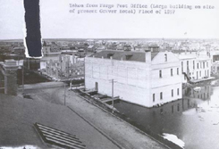 The 1897 flood crested at Grand Forks about noon on April 10 bringing the water up to a line along Third Street and covering Demers Ave. in East Grand Forks.  Flooding on all tributaries between Grand Forks and Emerson was reported, and a serious situation developed at Grafton.  The crest reached Emerson [Manitoba] on April 24 and completely flooded the town.  The flood of Winnipeg [Manitoba] did not receive mention as an outstanding event.