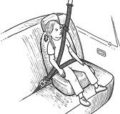 • The shoulder belt should never be placed behind a child's back or under the arm. If this is done, your child could be seriously injured or killed in a crash.